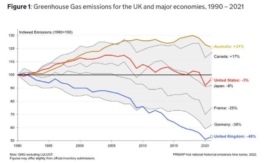 As Amber Rudd likes to say, the first job of any politician is to get elected, or re-elected. If track record were all it took for the Conservatives to get re-elected, they would be home and dry. After 13 years in government, the UK leads all advanced economies in decarbonization, and has chalked up an impressive list of achievements - from COP26 in Glasgow, which elicited pledges from 66% of the global economy to get to net zero by 2050 and 91% by 2070, to being the first major economy to legislate for Net Zero 2050, the largest economy to endorse Beyond Coal and eliminate it from its power generation mix, the largest global creator of marine reserves, and so on.